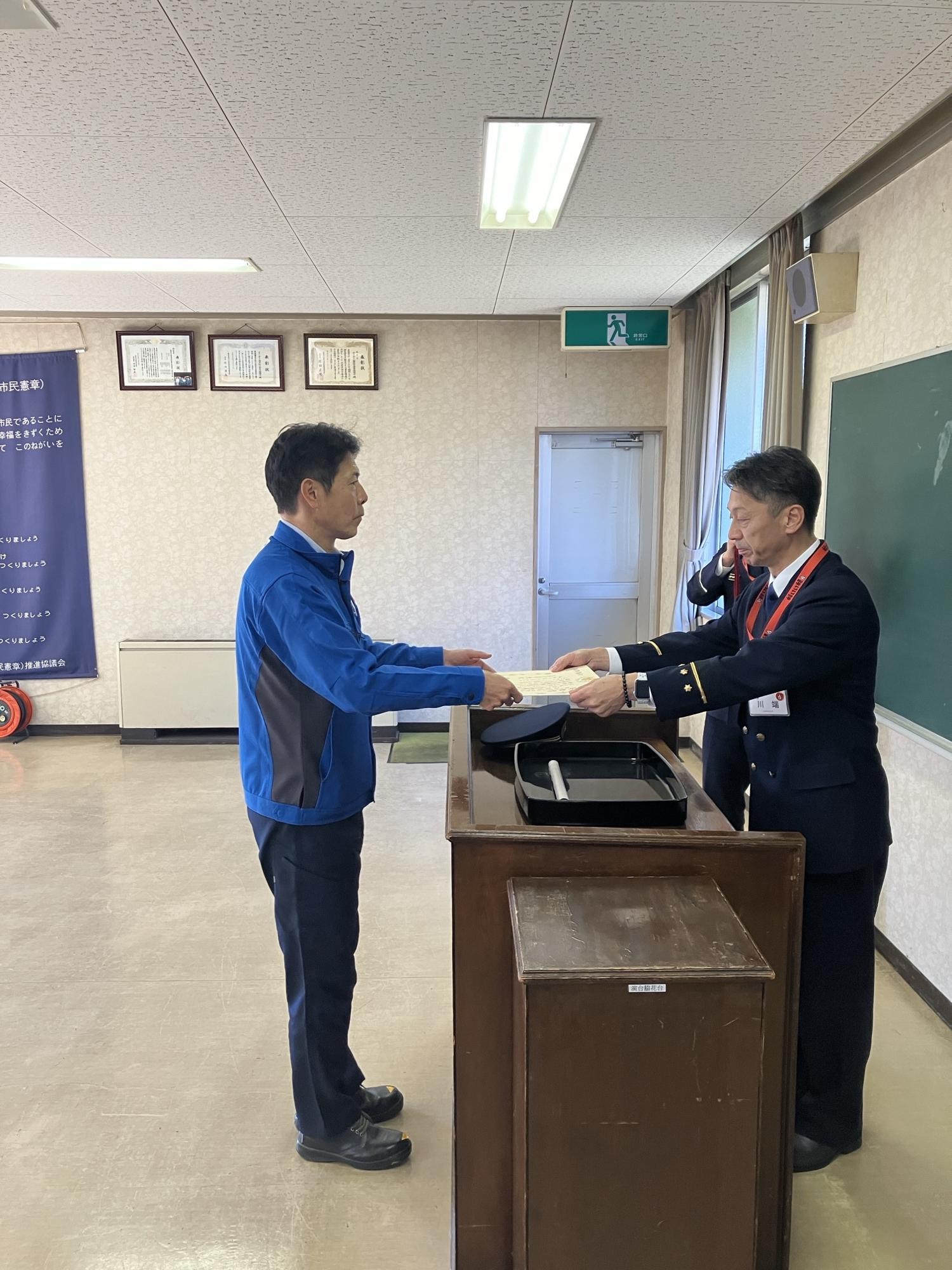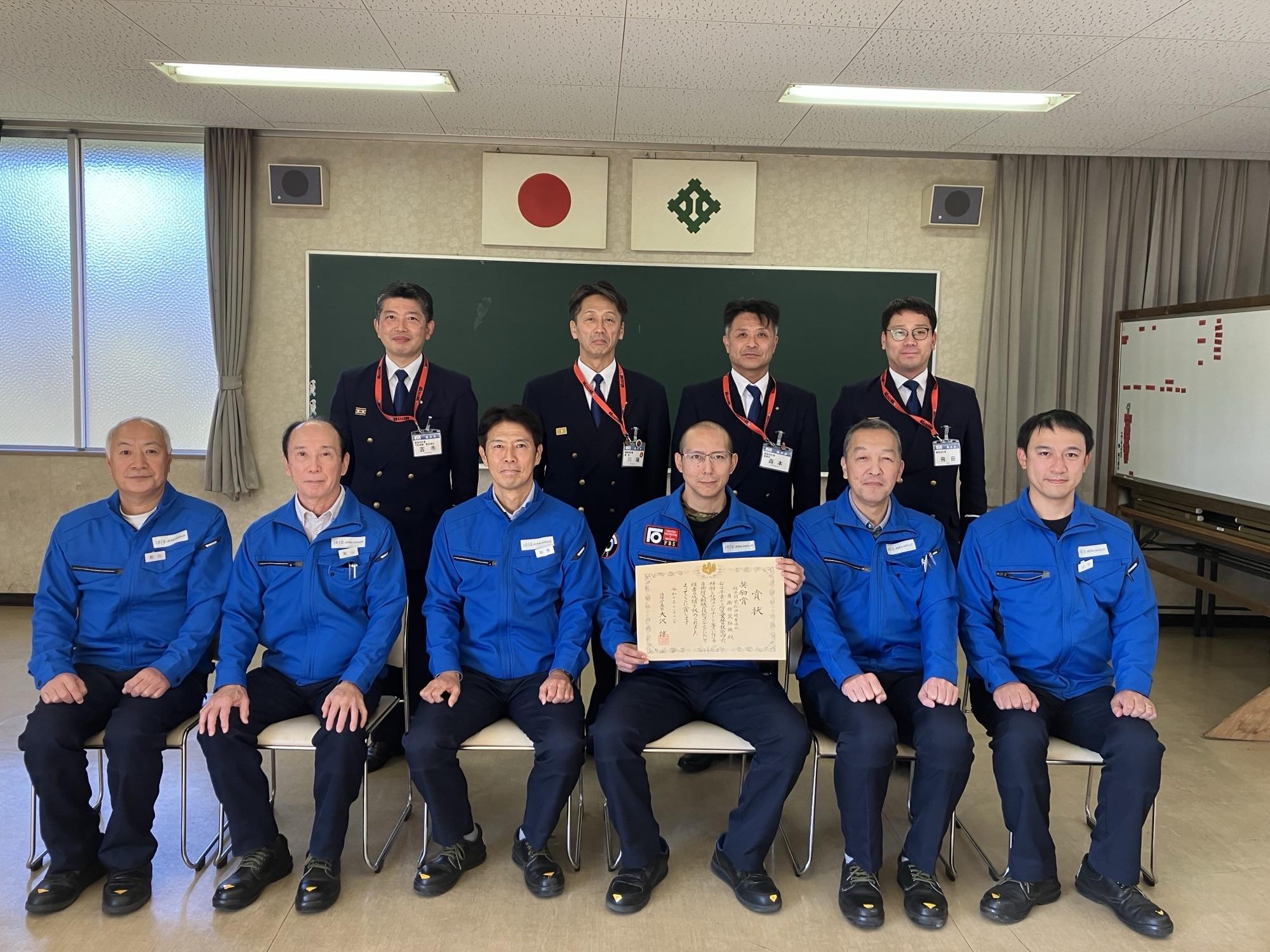その表彰状授与式が12月18日(木)、福井市臨海消防署にて行われ、当基地からは福井事業所長以下所内関係者が出席し消防署長より表彰状を授与されました。